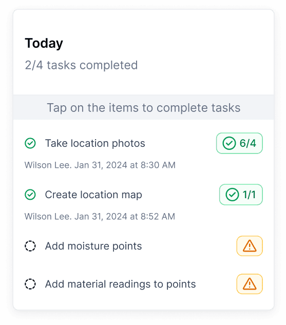 Before Copilot, technicians using Capabuild’s app had to constantly switch screens to complete these specialized tasks—capturing photos, recording atmospheric readings, and filling out dry logs—which often led to delays and errors.
