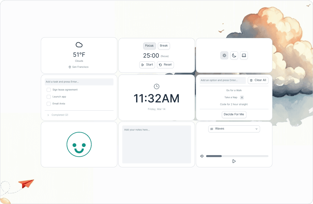 Vibe coding my way to a sleek all-in-one dashboard that keeps me organized and ready to tackle the day. Simple, efficient, and packed with the right tools to get things done.